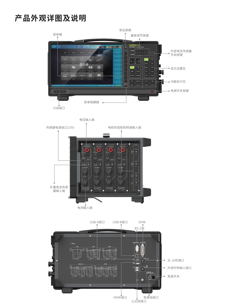 ●最高测量精度:±(读数的0 03%+量程的0 05%)●带宽:DC,0 1Hz-5MHz●4个功率测量通道+2个电机输入通道●可组合配置,多种输入范围和精