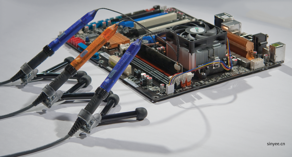 具有两个高度灵活的NiTiNOL合金探头的可调节探头模块Dx00A-AT,可以轻松对非常密集的电路进行探测。